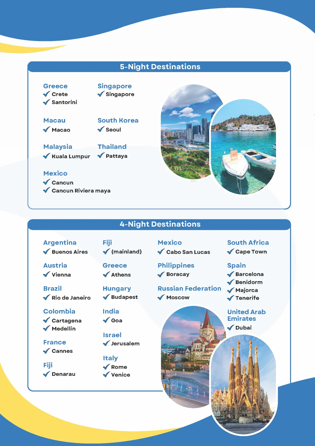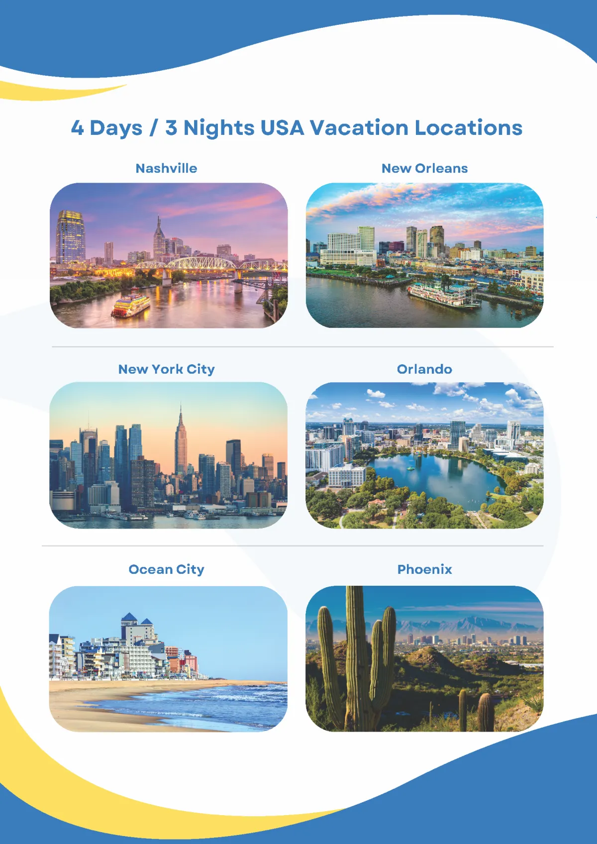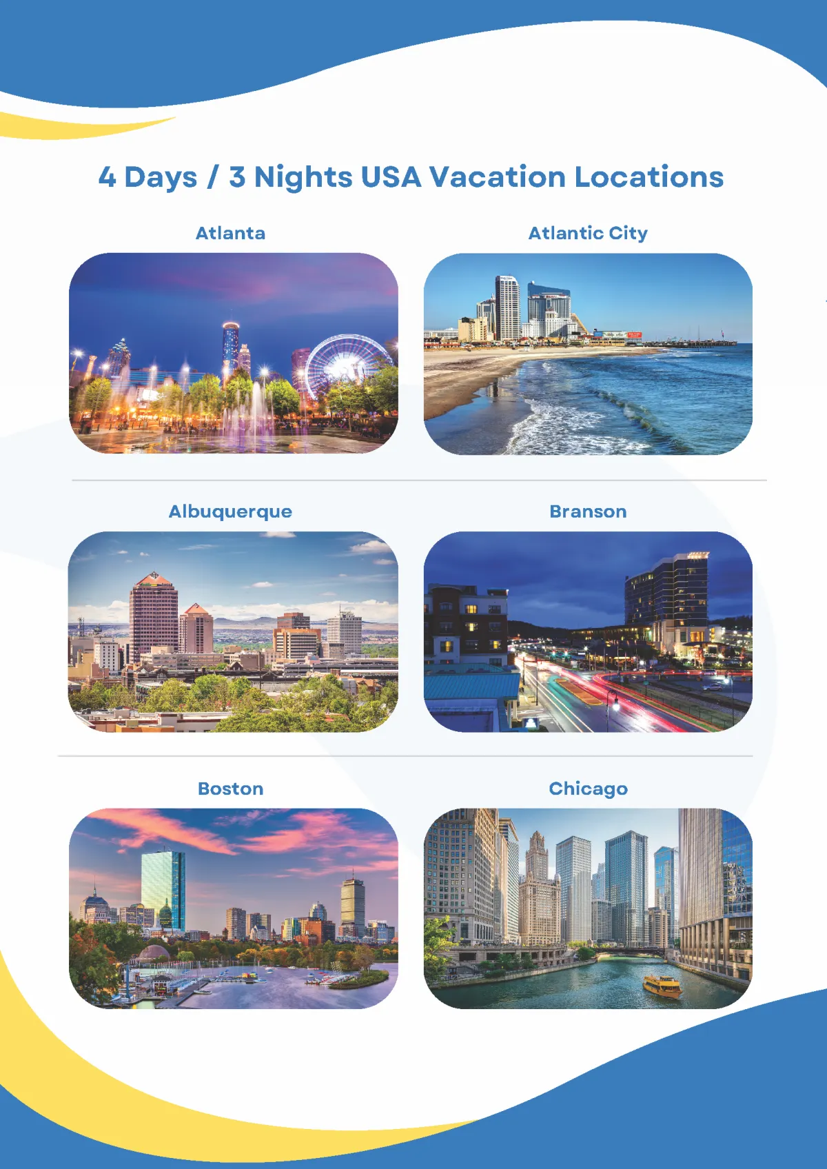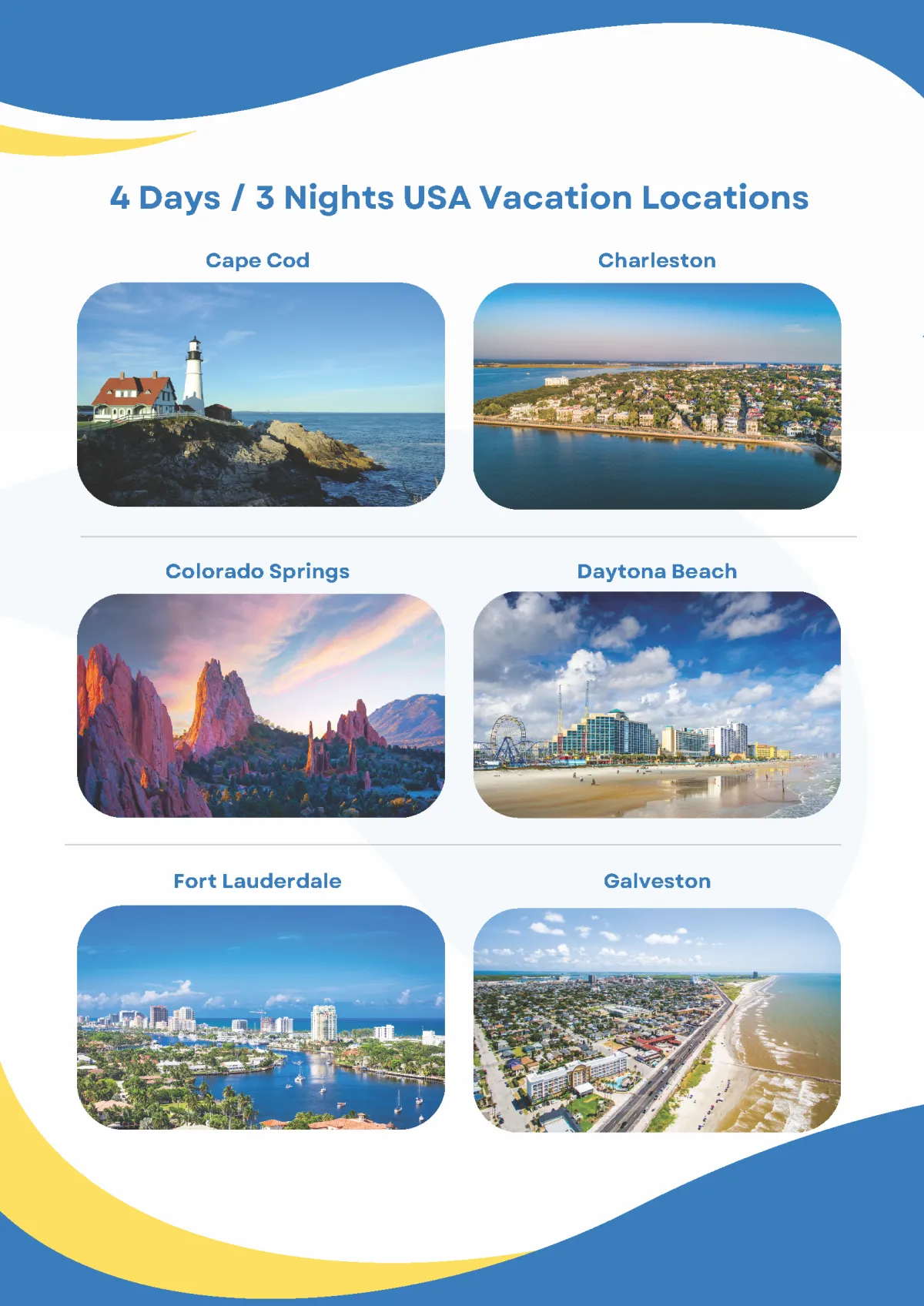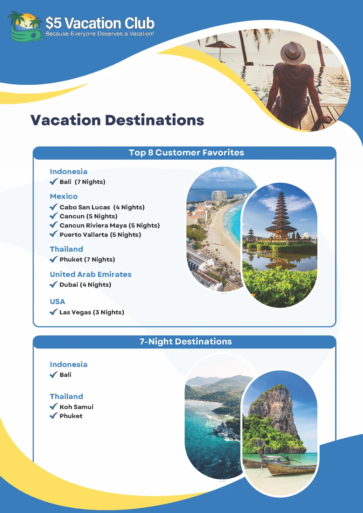 Choose from over 130+ USA & International Destinations for Your Complimentary Vacation!
